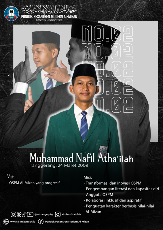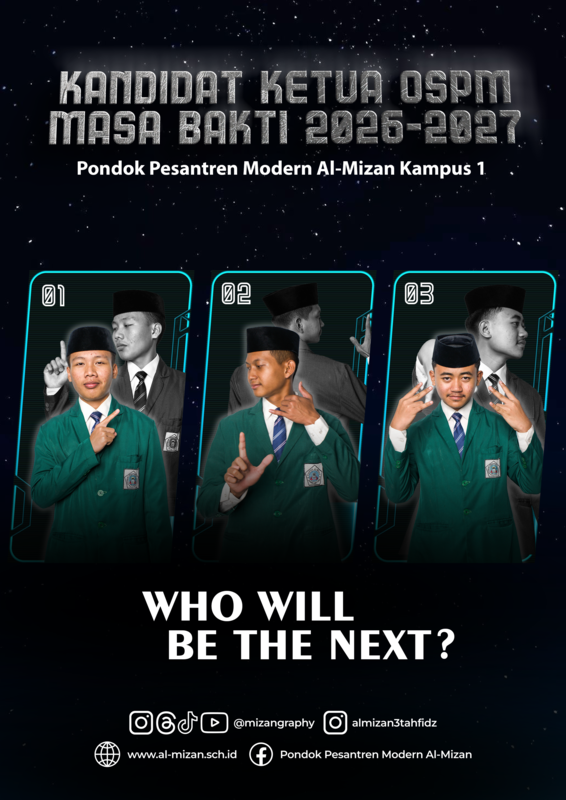 Terdapat 3 calon ketua OSPM, yaitu Dimas Abiyyu Abbrar (5A IPS), Muhammad Nafil Atha'ilah (5A IPA) & Raiza Zainy Firdaus (5A IPA) dan 3 orang calon ketua Koordinator Gerakan Pramuka, yaitu Rajjrama Messa Khamanei Rachman (5A IPA), Firqoh Abdillah (5A IPA) & Ahmad Firzana Syahmi (5A IPS) yang secara resmi memperkenalkan diri di hadapan seluruh santri dan dewan guru Al-Mizan 1. Masing-masing calon menyampaikan gagasan dan komitmen mereka dalam mendukung peningkatan prestasi, penguatan karakter santri, serta pengembangan kegiatan kesiswaan yang positif dan berkelanjutan.